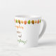 This small size latte mug is shown with a cute pumpkin spice and everything nice print.