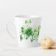 This latte mug is shown with a St. Patrick's Day clover art print.