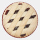 Photograph of lattice-top raspberry pie/tart on burgundy background. Image copyright 2012 by Margaret E. Cmelik.