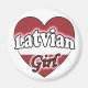Leuke magneet met een hart afgebeeld met de Letse vlag erop. Op de tekst staat: Latvian girl De achtergrond is in de kleur wit. Leuk om te geven als cadeau of voor jezelf om te laten zien dat je trots bent om Lets te zijn. kleuren: rood en wit.