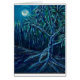 card of an acrylic painting of lone Lau Hala tree in Paia Hawaii lit by the crescent moon~