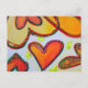 Les coeurs de pêche, roses et oranges s'étirent et s'approchent des fleurs dans un jardin se penchant vers le soleil. Un contour vert trace chaque coeur. Les points de couleur jaune pâle sont comme des confettis entre les coeurs. La peinture à l'aquarelle a une légère couche d'or et de rose sur le dessus. Customisez cette carte postale avec vos textes et images personnels !