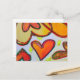 Peach, pink, and orange hearts stretch and reach for each other flowers in a garden bending to the sun. A green outline traces each heart. Pale yellow colour dots are like confetti between the hearts. The watercolor painting has a light layer of gold and pink on top. Customize this postcard with your personal text and images!