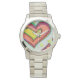 Yellow, peach, and orange hearts form two concentric hearts gliding towards each other tip to tip. Pale yellow colour dots are like confetti between the hearts. The watercolor painting has a light layer of gold and pink on top. Detail from Inspirational Word "Laugh" painting. Make customized love heart watch designs with your personal messages and/or photos. Use the "customize it" button. The hearts art makes great personalized custom wrist watch gifts!