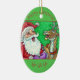 LAUGHING SANTA & REINDEER CHRISTMAS CERAMIC ORNAMENT
