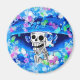 Laughing Skeleton Woman in Blue Bonnet on Blue Magnet
