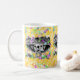 Lovely Calavera Sugar Skull on a colourful yellow floral background. This Dia De Los Muertos coffee mug is available in several styles and size options. Find the one that is best for you!
