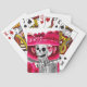 Laughing Skeleton Woman in Red Bonnet Playing Cards