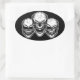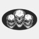 Be the life of the party wearing this funny laughing skull trio product, featuring three metallic-like laughing skulls. The skull trio includes a wide eyed skull, a winking skull, and a skull laughing so hard, he can't keep his eyes open. Designed for all who love a good laugh: comedians, jokers, pranksters, and life of the party. Add your own text, for a personalized touch. These good humoured, comical skulls will always have the last laugh.
