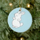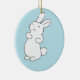 Laughing white bunny on blue ceramic ornament