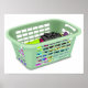 The humble laundry basket never looked as good as this design. It is a green laundry basket, the plastic kind with some nicely folded clothes in it. It actually makes a good household item design. This laundry basket design looks great on this poster. Perfect for yourself or as a gift