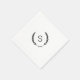 This modern rustic logo-style design has a laurel branch frame with your monogram initial. Personalize the template with the bride and groom's names or monogram initials. Add your wedding date, the city, state or venue name or any other custom text. Use the design tools to choose any colours, edit the fonts or upload your own photos to create custom wedding cocktail napkins to match your wedding colours and style!