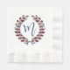 Laurel Wreath Monogram Letter M Red White and Blue Stars and Stripes USA Elegant Patriotic Party Napkins
