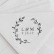Custom-designed Save the Date self-inking monogram stamp featuring rustic hand-drawn laurel wreath with bride and groom/couple's initials and wedding date. Personalize this elegant wedding stamp today to give your envelopes a touch of style!