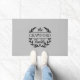 The classic laurel wreath design is updated including a little heart near the bottom allowing personalization for the family name on this door mat.