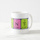 Laurentine spelled out as La U Re N Ti Ne (Lanthanum Uranium Rhenium Nitrogen Titanium Neon) on a mug for the scientist in you.
