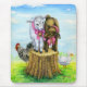 Two adorable baby goats on display atop a tree trunk, flanked by a duck and a rooster. Inspired by my cousin's adorable barn animals. By Amanda Diehl, Paxdomino Designs