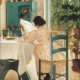 Laurits Andersen Ring's "At Breakfast" is a tender and intimate domestic scene that portrays a woman reading a letter while seated at a breakfast table, reflecting Ring's talent in depicting the simple joys of everyday life with a warm and naturalistic approach.