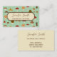 L'avant comporte un motif de champignon sur le vert amorti. Le nom et la profession sont dans une boîte crème. Le dos a l'espace pour de pleins détails de contact sur un arrière - plan crème.