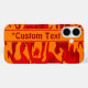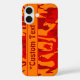 Camouflage smartphone case in red and orange with editable text field. Personalize on the product page with any string of letters, numerals or text symbols.