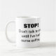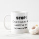 La tasse à café Lava Stop présente une photographie saisissante capturant un flux de lave solidifié avec un panneau d'arrêt et des panneaux de signalisation qui sortent du milieu pris par Kurt Keller avec un appareil photo de 35 mm d'un hélicoptère sur la Big Island, Hawaii. Le côté gauche de la tasse a les mots personnalisables en noir, STOP! Ne me parlez pas avant d'avoir bu du café. Cette drôle de photo qui dit tasse fait un grand cadeau pour les amoureux de la nature, les amateurs de lave, les amateurs de photographie, et les amateurs de café pas le matin.