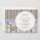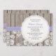 Les invitations à la douche nuptiale en ruban et dentelle rustique, avec une clôture en bois imprimé, une tête à ongles, un ruban violet et lavande clair et du grain de bois et un arrière - plan ancien en dentelle damassée, sont parfaites pour un wedding shower vintage à thème de ferme, de ferme ou de campagne. Créé et réalisé par Chrissy H. Studios, LLC.Tous droits réservés.