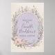Ce joli panneau d'accueil fleuri rose vif et lavande est orné d'une bordure fantaisie avec un arrière - plan en ivoire. Belle pour une fête de jardin, une douche nuptiale ou toute autre occasion élégante.