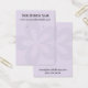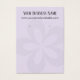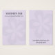 Cette carte subtile comporte des supports d'espace modèle pour ajouter vos coordonnées professionnelles à l'avant et à l'arrière. La couleur arrière - plan a été réglée sur une lavande assez molle, sur laquelle l'image de fleur graphique la plus simple et la plus obscure a été placée sur elle, créant un effet de ton sur ton subtil. Tout comme la couleur arrière - plan, le texte noir peut être changé en n'importe quelle couleur ou autre police de votre choix.