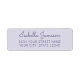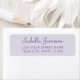 Une étiquette d'adresse de retour moderne, simple et élégante qui peut être facilement personnalisée avec vos propres détails. La typographie manuscrite de style informel et la typographie moderne simple en dessous dans le violet foncé contraste magnifiquement avec l'arrière - plan mauve / lavande douce.