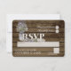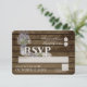 Baby's Breath and lavender, Rustic wood RSVP carte de réponse design pour compléter notre échelle en bois Vintage avec des lettres LOVE faire-part de mariage avec pot plein de souffle bébé et arrière - plan en bois de grange foncé.