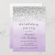 Invitation d'anniversaire avec fausse parties scintillant argent design et ombre lavande violet aquarelle arrière - plan.
