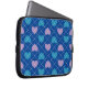 This laptop sleeve features an argyle pattern of lavender and baby blue hearts on a blue background.