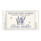 Pale ivory label with a blue dotted border and vintage lavender illustration with bees. Blue Text