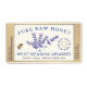 Pale ivory label with gold rim and blue dotted border. Vintage lavender illustration with bee. Made with Love and Gold Heart Logo,