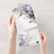 Your wedding is a celebration of love and commitment, and this All-in-One Wedding invitation with black and lavender peonies will set the perfect mood for your big day. Embrace the allure of this invitation and let your guests feel the excitement from the moment they open it. The All-in-One wedding invitations are both beautiful and practical by combining the wedding invitation with an easy to remove perforated RSVP postcard. They are also quick and easy to prepare for mailing. Simply address the invitation, fold the back flap and seal with the included clear stickers. Once your guests receive the pre-addressed invitation they simply tear off the perforated RSVP card and drop it in the mail. The addition of the QR code allows your guests to easily access your wedding website for information including reception details and dinner choices!