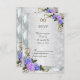 Lavender and Blue roses border wedding response card template on silvery white satin-look background. Image and illustration composition for elegant formal wedding, anniversary or engagement party RSVP template The text is fully customizable. Add your information or change it completely. Select a different font if you like.. Template can be used for any special occasion. Simply change the text to suit your needs. with gold liked hearts. If you should choose a different size invitation, please make sure that you click the box to make sure that the image is is formatted to fill the template. This is 2 sided so you can use the second side for dinner choices or directions