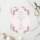 Celebrate your special day with this dreamy watercolor wedding program. Lush arrangements of lavender roses with a blush background, accented with hints of greenery, appear as if hand-painted across the card. The soft, textured artwork creates a serene and feminine aesthetic, while a modern, clean-lined text layout provides a polished contrast. Paired with a lilac or blush envelope and an optional ribbon belly band, this suite sets a whimsical and romantic tone for your guests.. This wedding invitation is part of a complete set.