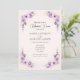Celebrate your special day with this dreamy watercolor wedding rehearsal card. Lush arrangements of lavender roses with a blush background, accented with hints of greenery, appear as if hand-painted across the card. The soft, textured artwork creates a serene and feminine aesthetic, while a modern, clean-lined text layout provides a polished contrast. Paired with a lilac or blush envelope and an optional ribbon belly band, this suite sets a whimsical and romantic tone for your guests.. This wedding invitation is part of a complete set.