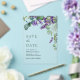 Amaze your guests with this elegant save the date featuring beautiful lavender flowers and modern typography. Simply add your event details on this easy-to-use template to make it a unique personalized one-of-a-kind save the date card.