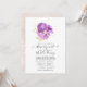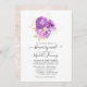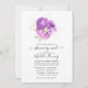 Shimmering purple floral bridal or baby shower by mail invitation with faux foil ivory foliage and distressed ivory damask reverse.