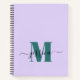 This monogram design features a lavender and teal duo colour combination with the first name and last initial monogram in flowy girly script over bold serif typography. To customize this cute notebook, click "Personalize" and enter the name and initial, choose the cover colour, and check the paper type. There are many options available to suit your needs, and it makes a nice gift, too.