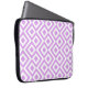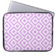 This cool lavender and white geometric pattern is an original ornamental design. Lavender diamonds with white borders are surrounded by light purple meanders which angle around them. White zigzags separate the winding pale purple paths and offset diamonds.