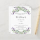 A white background decorated with lavender flowers and eucalyptus greenery. Personalize and your names and details.