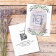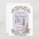 A white background decorated with lavender flowers, eucalyptus greenery and an arch frame for your photo. Personalize and your names and details.