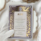 Elevate your dining experience with our stunning menu card, featuring a beautiful female head with long flowing hair and ornate details inspired by the iconic Art Nouveau style of Alphonse Mucha. Printed with real foil, this menu card is a true masterpiece that adds elegance and sophistication to any event.