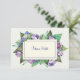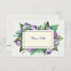 A charming card featuring crocus flowers, in shades of lavender, overlaid with a framed panel which holds your name. A blue bird rests on the corner of the panel. The card is easy to customize with your wording, font, font colour, paper shape options and choice of six paper types.