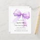 A white background, decorated with a lavender colored large bow. Personalize and add a name and party details.