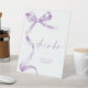 Lavender Bow Drinks Pedestal Sign – Elevate your bridal shower or baby shower with this elegant pedestal sign featuring a purple bow. This stylish sign is perfect for displaying on your drinks table, adding a touch of femininity and charm to your event décor. The lavender bow design and delicate lettering make this sign a beautiful addition to your event theme, guiding guests to refreshments in a sophisticated way.