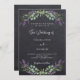 Chackboard background decorated with lavender flowers and eucalyptus greenery. Personalize and your names and details.