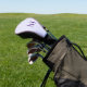 Golf Head Cover with lavender solid colour background and purple font .Simple and trendy design by Alma Wad .Personalize it with your monogram now ..